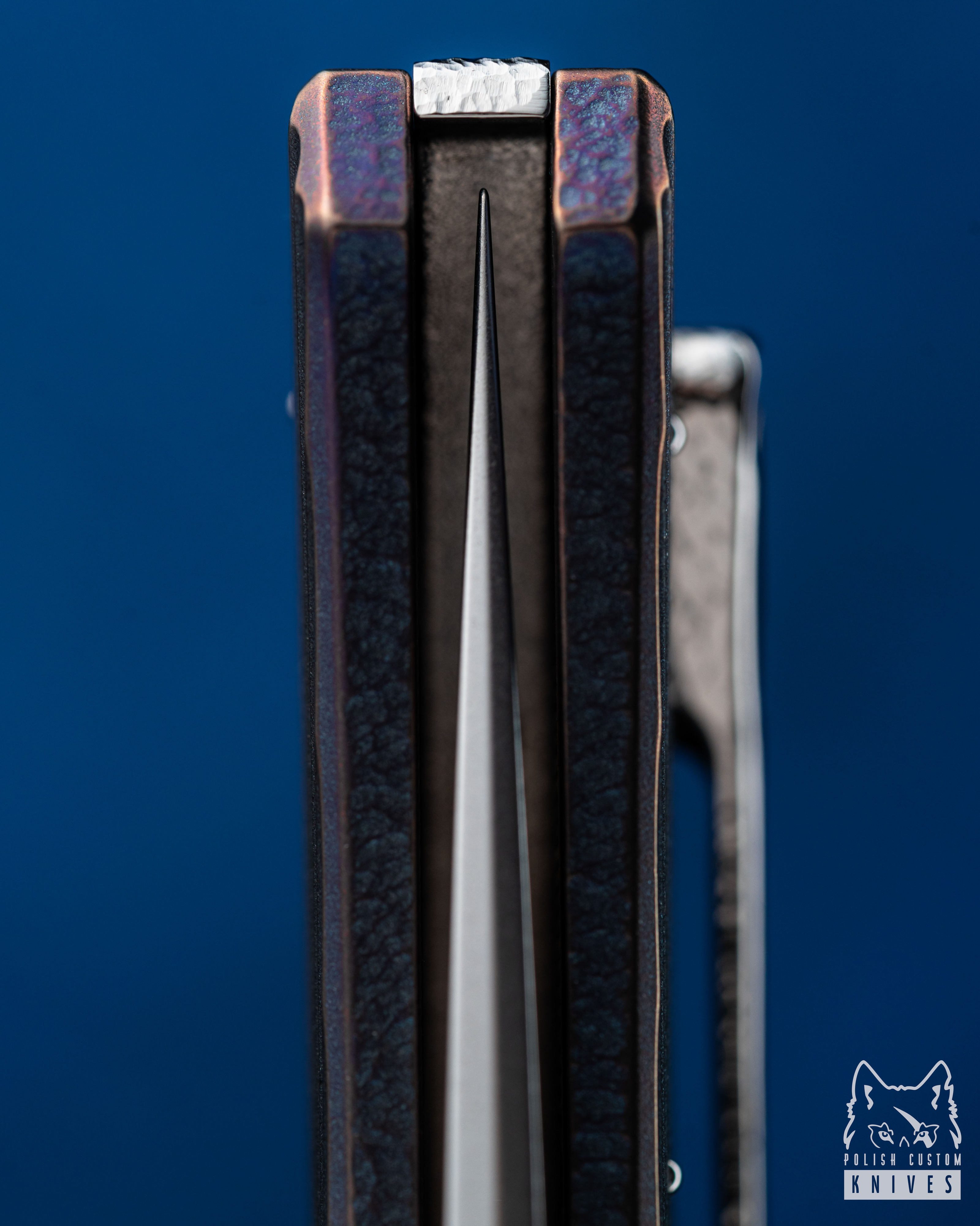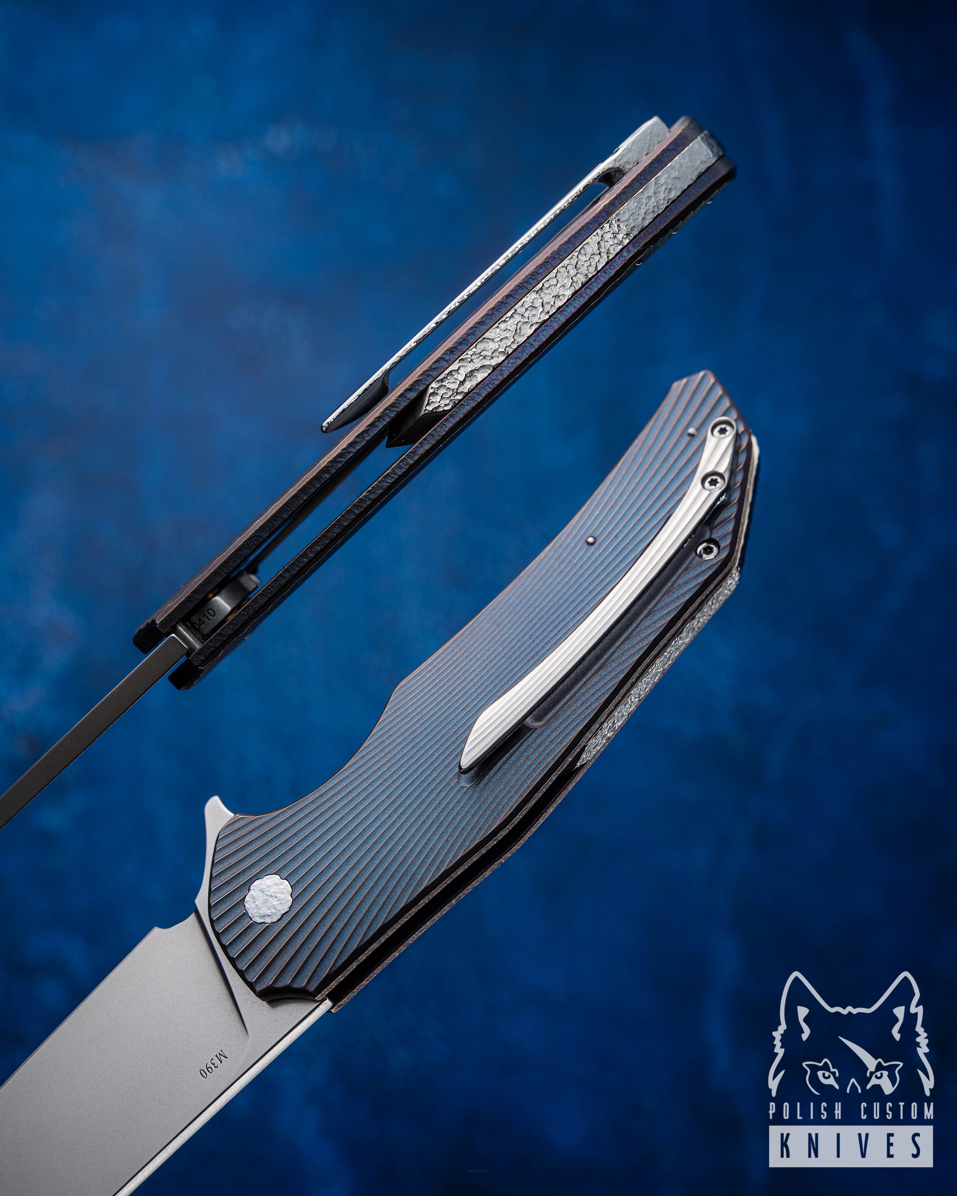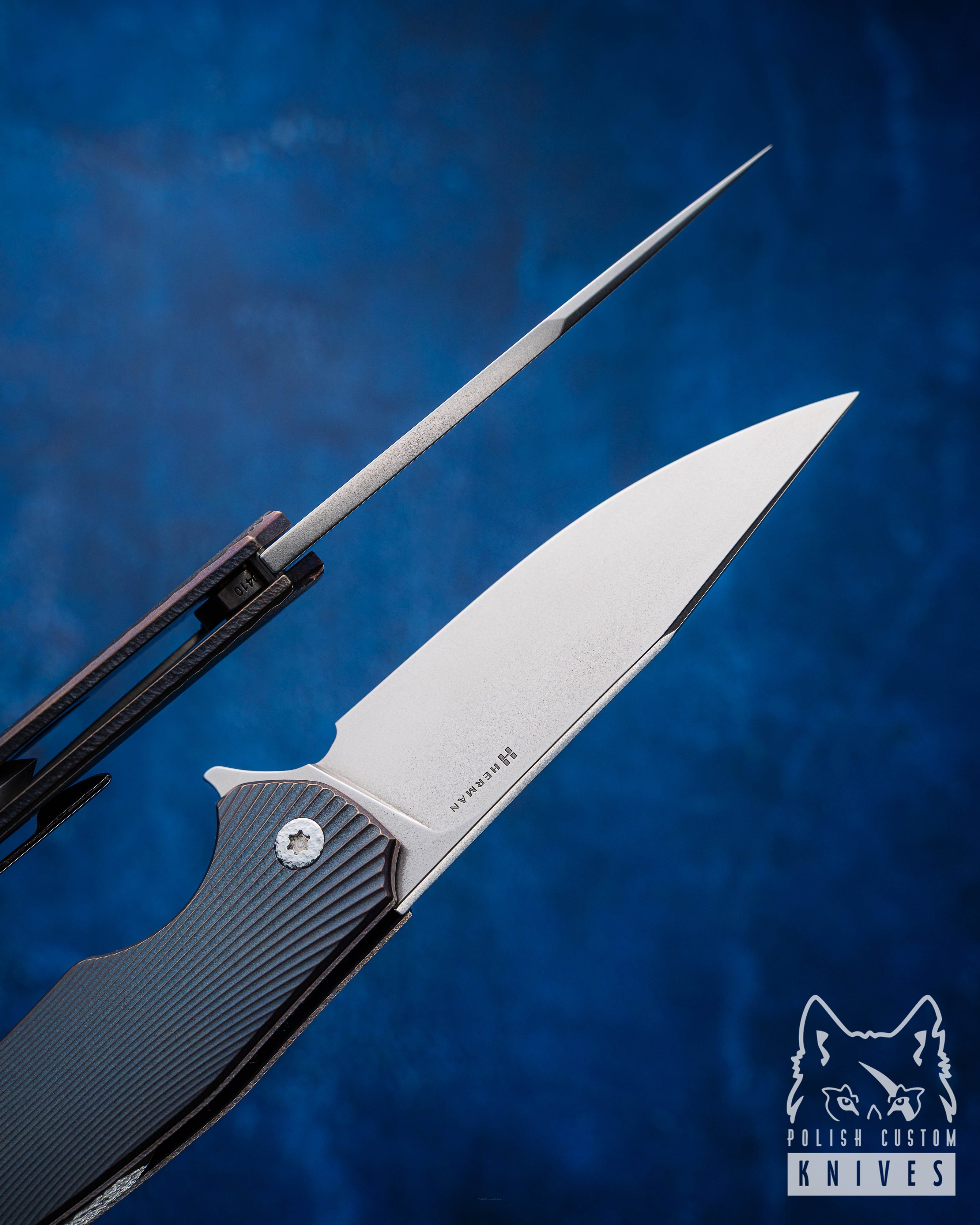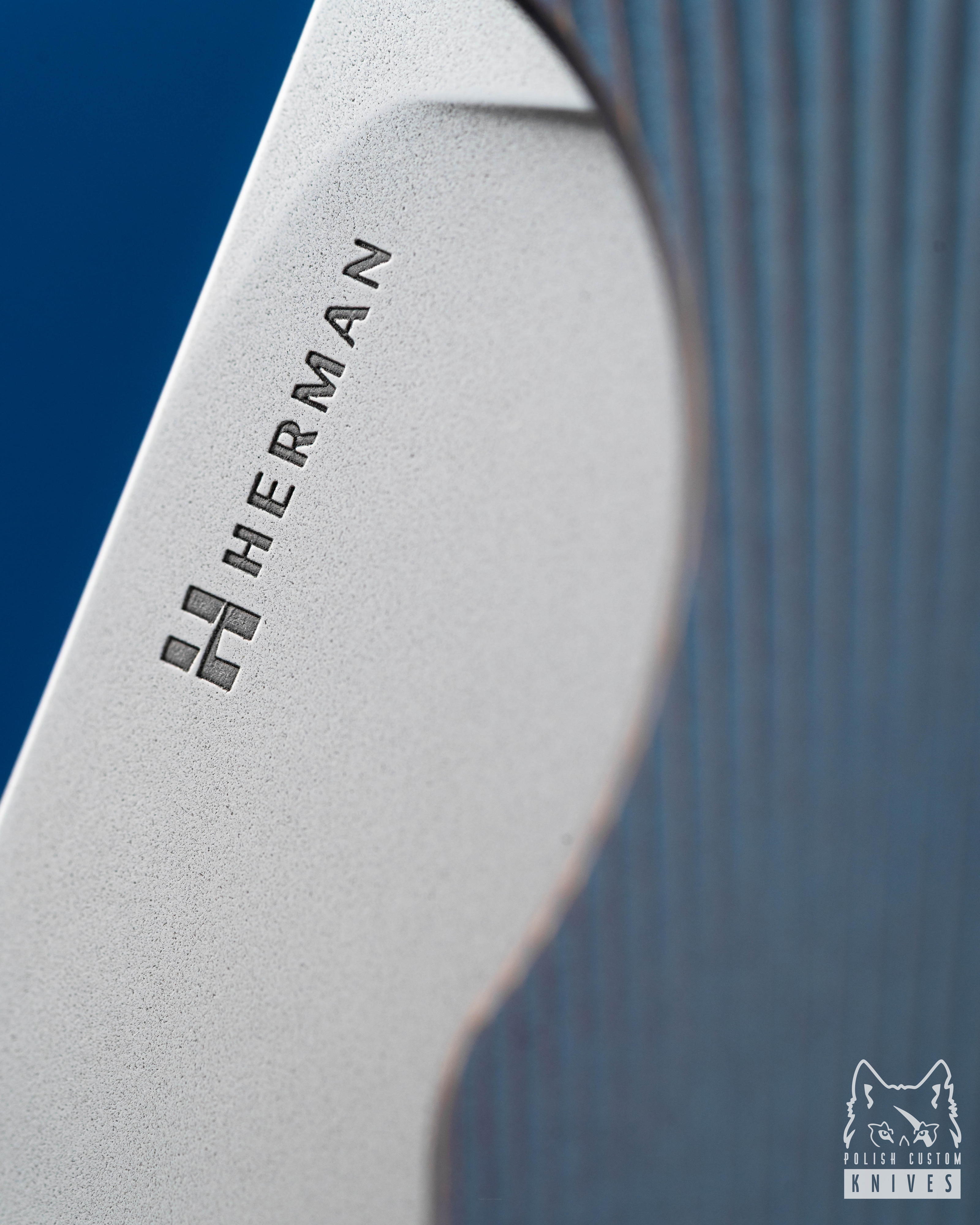 The custom Herman Knives pivot ( Hammered ) was fully designed and manufactured in our workshop. Built on the TORX T20 system, the construction features a newly developed thread with an increased diameter and reduced pitch, resulting in higher precision and smoother pivot adjustment. This solution minimizes the risk of play and ensures more stable settings.