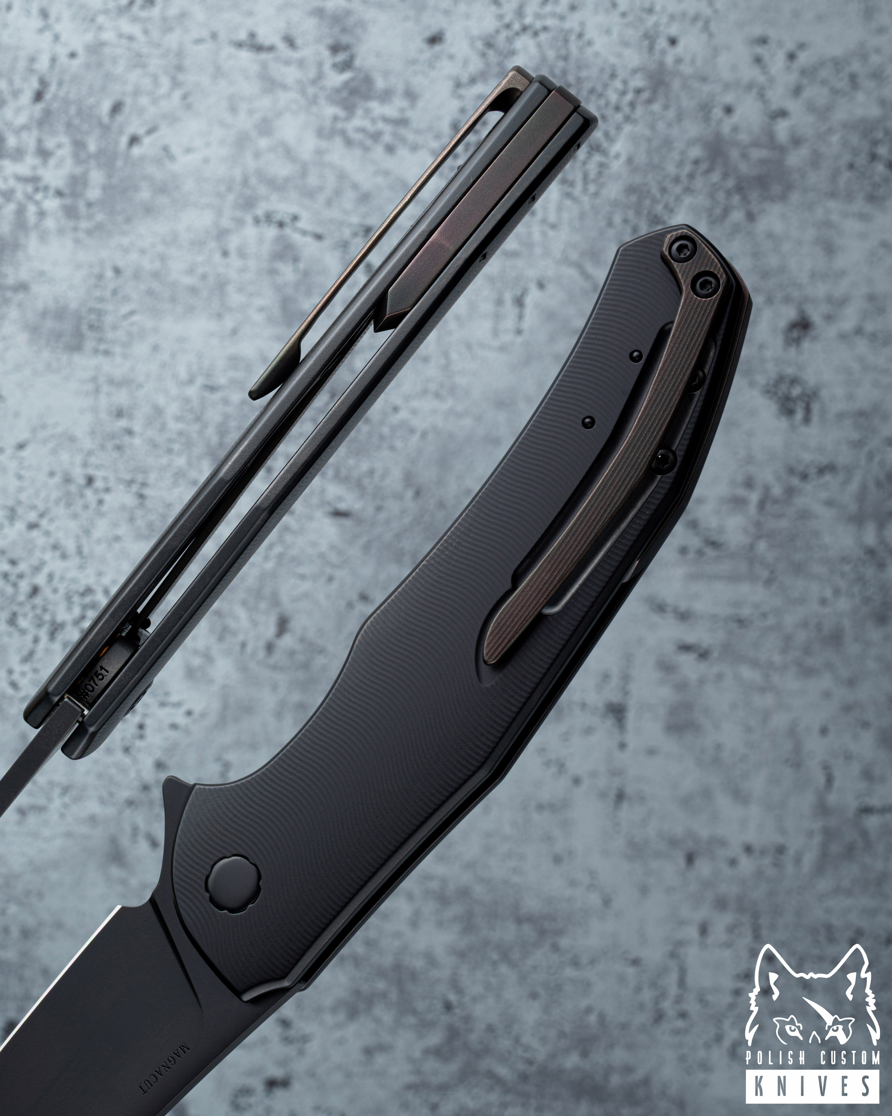 Blade: CPM MagnaCut powder stainless steel, thickness 3,3 mm (0.1299"), steel hardened with deep cryo treatment in liquid nitrogen, hardness 63-64 HRC Medium detent, Flat grind