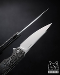 Ergonomically designed handles of these knives ensure comfort and a secure grip, perfectly complemented by the use of advanced materials. High-quality steels such as M390 and M398 from Bohler, CPM MagnaCut, Damasteel RWL34, Damascus steel, and Damax from Alleima, combine reliability and durability with aesthetic perfection.