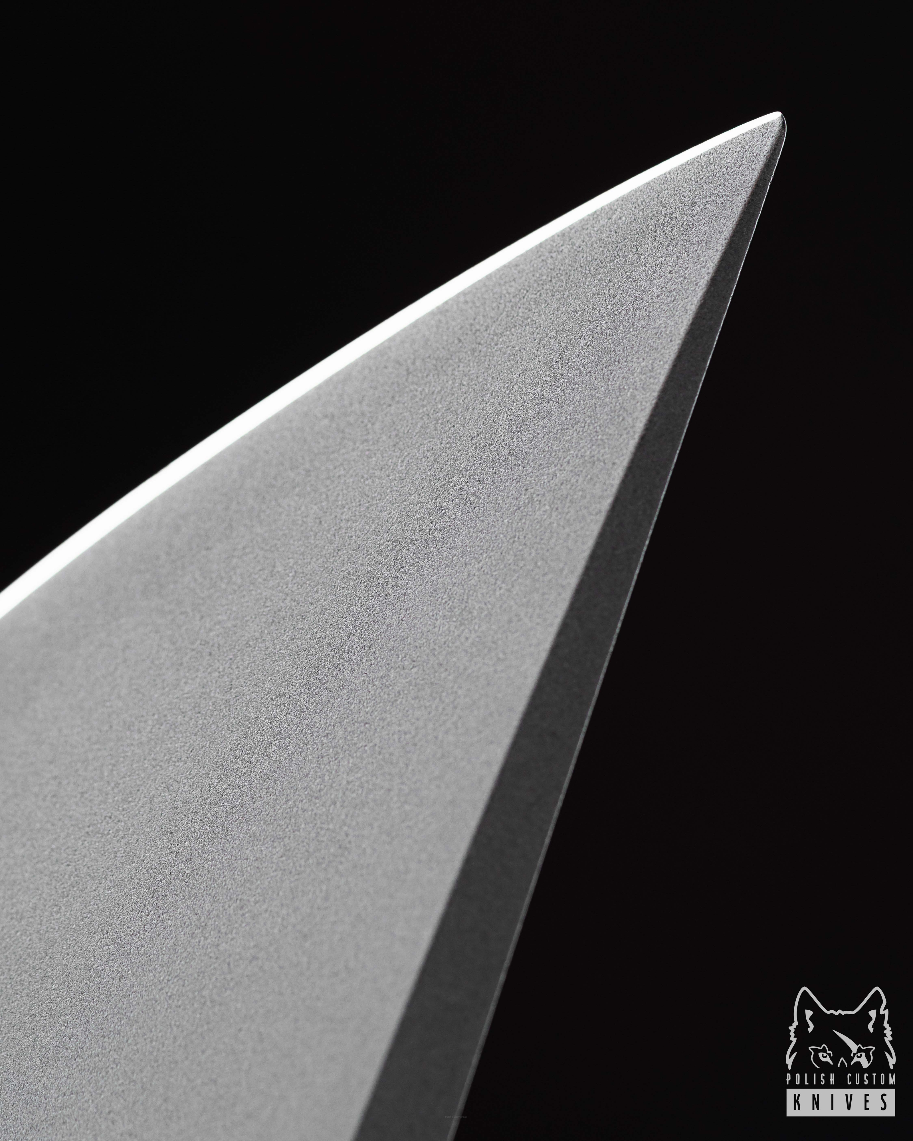 thickness 3,5 mm (0.1378"), heat treated with a deep crio (liquid nitrogen) hardness 63-64 HRC, Medium detent, Flat Grind