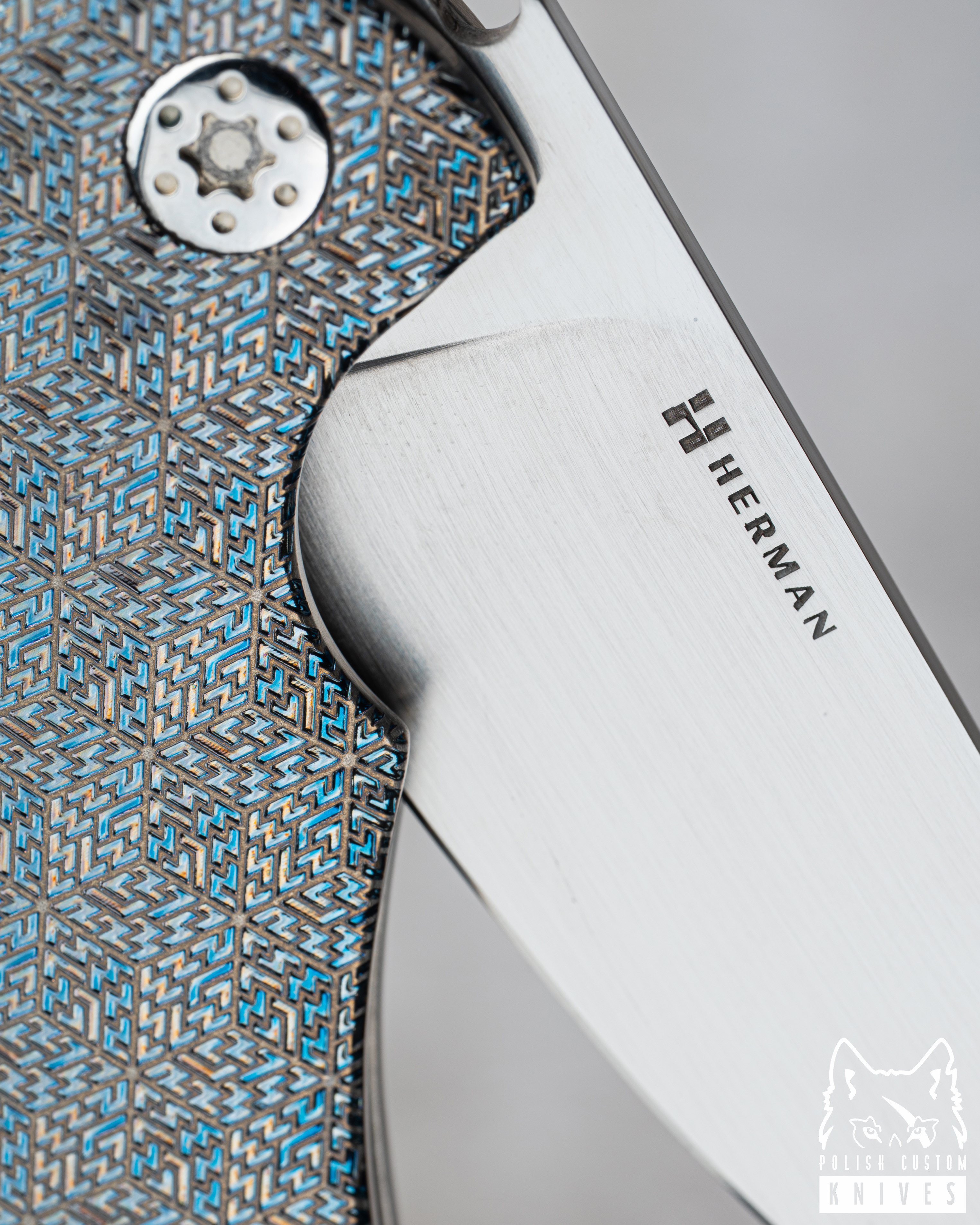 The custom Herman Knives pivot was fully designed and manufactured in our workshop. Built on the TORX T20 system, the construction features a newly developed thread with an increased diameter and reduced pitch, resulting in higher precision and smoother pivot adjustment. This solution minimizes the risk of play and ensures more stable settings.