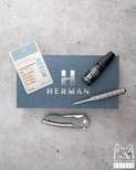 New original box including a microfiber cloth, Pruciak Protector Glide for Herman oil, and a dedicated titanium screwdriver manufactured in-house by Herman Knives.