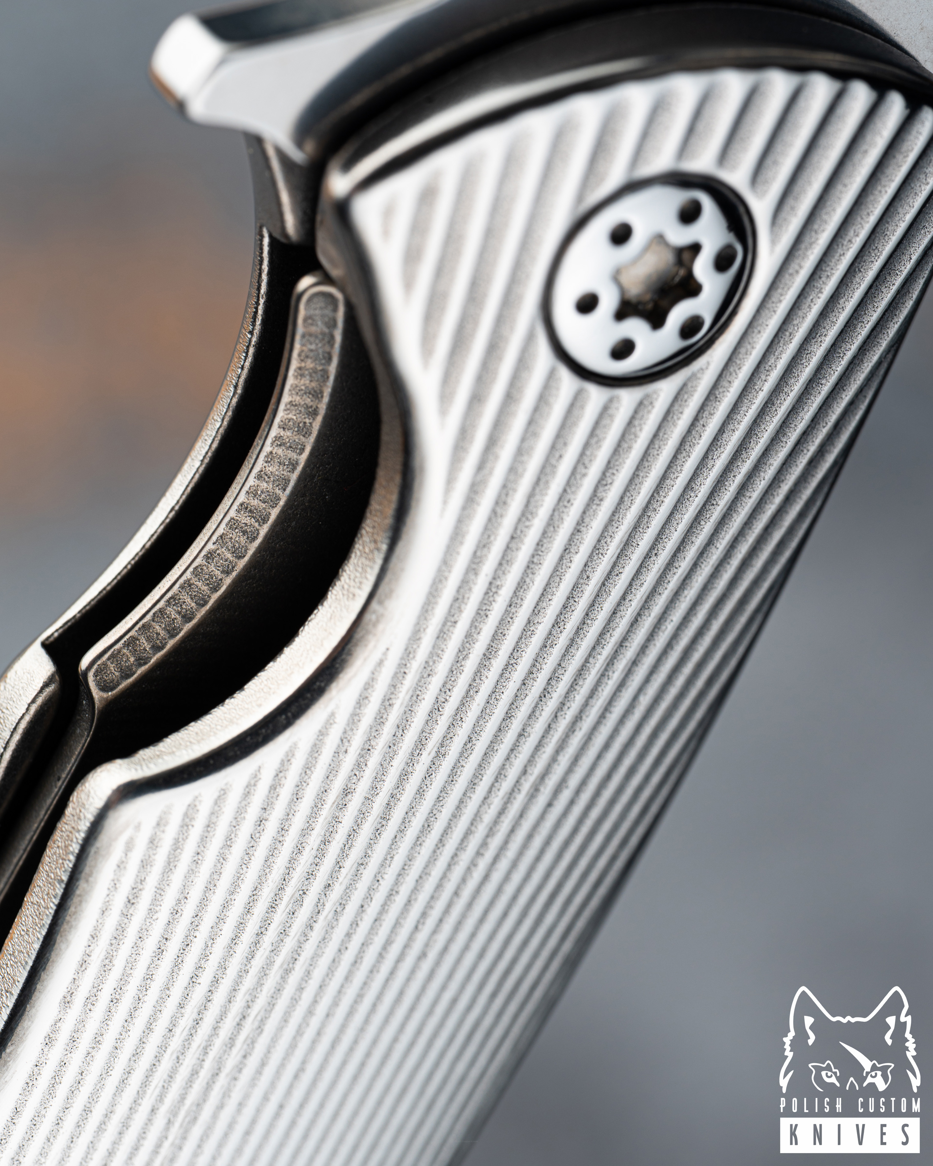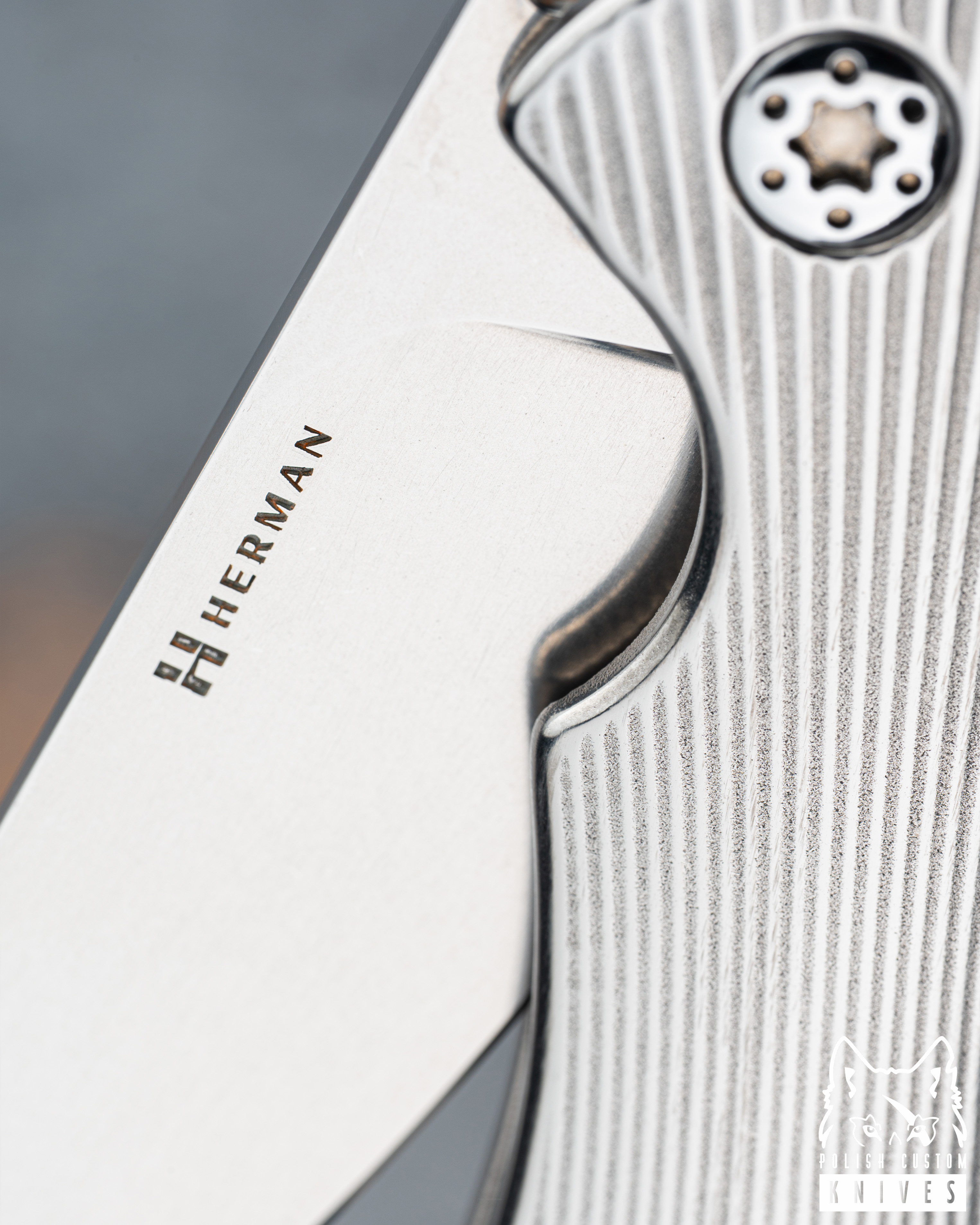 The screws are made of vacuum-hardened stainless steel. All three components are produced in-house by Herman Knives on our Swiss-type automatic lathe.