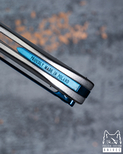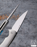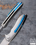 In the Micro Sting series, a variety of renowned steels such as M390, M398 from Bohler, CPM MagnaCut, Damasteel RWL34, and Damascus steel from the Swedish manufacturer Alleima were used, contributing to its unique appearance and ensuring durability and reliability in daily use.
