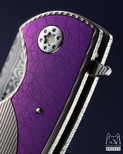 In the Micro Sting series, a variety of renowned steels such as M390, M398 from Bohler, CPM MagnaCut, Damasteel RWL34, and Damascus steel from the Swedish manufacturer Alleima were used, contributing to its unique appearance and ensuring durability and reliability in daily use.