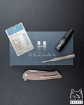 New original box including a microfiber cloth, Pruciak Protector Glide for Herman oil, and a dedicated titanium screwdriver manufactured in-house by Herman Knives.