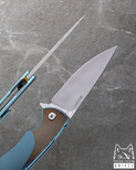 In the Sting series, various high-quality steels such as M390, M398 from Bohler, CPM MagnaCut, Damasteel RWL34, Damascus steel from the same renowned Swedish manufacturer, and Damax from Alleima, another well-known Swedish producer, are used. These materials not only offer an attractive appearance but also ensure durability and reliability in daily use.
