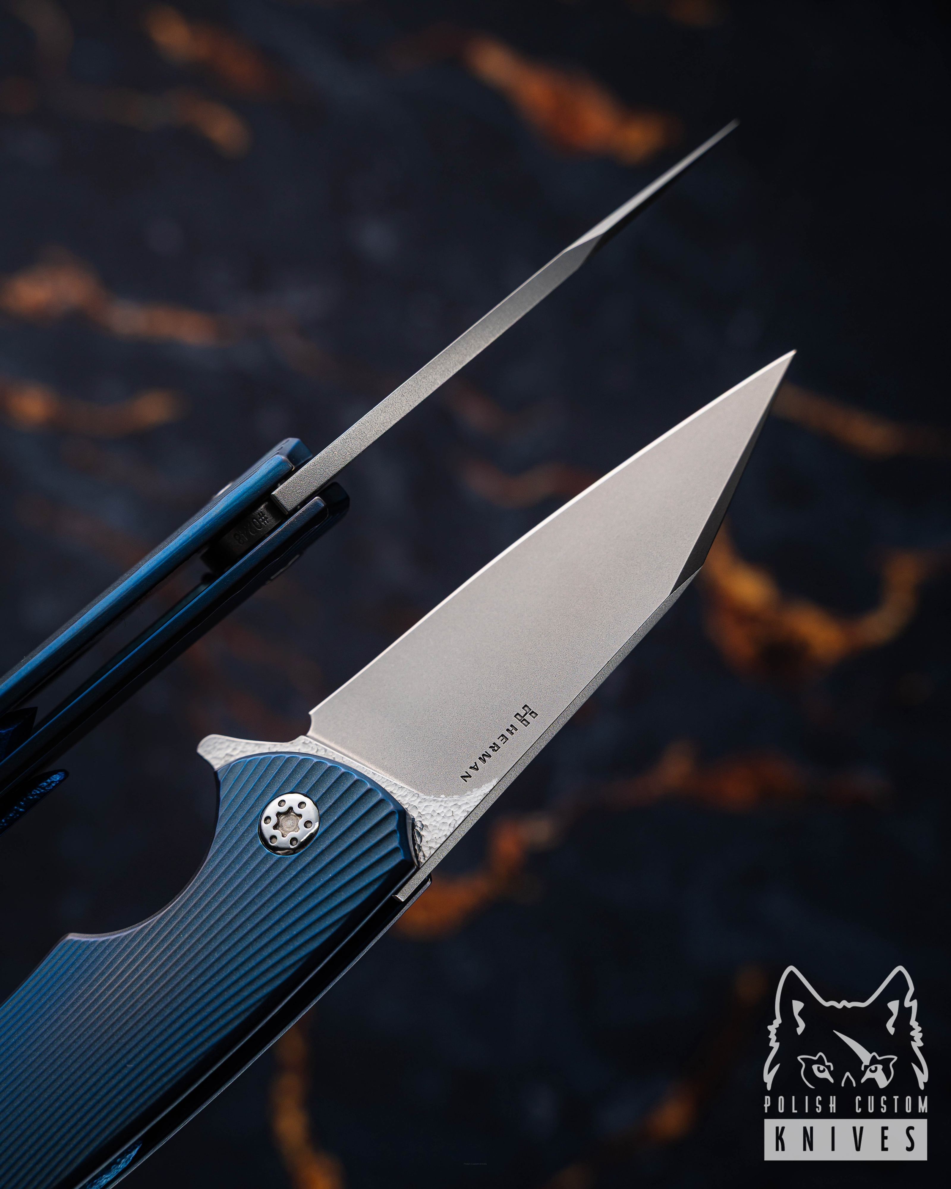 The custom Herman Knives pivot ( Hammered ) was fully designed and manufactured in our workshop. Built on the TORX T20 system, the construction features a newly developed thread with an increased diameter and reduced pitch, resulting in higher precision and smoother pivot adjustment. This solution minimizes the risk of play and ensures more stable settings.