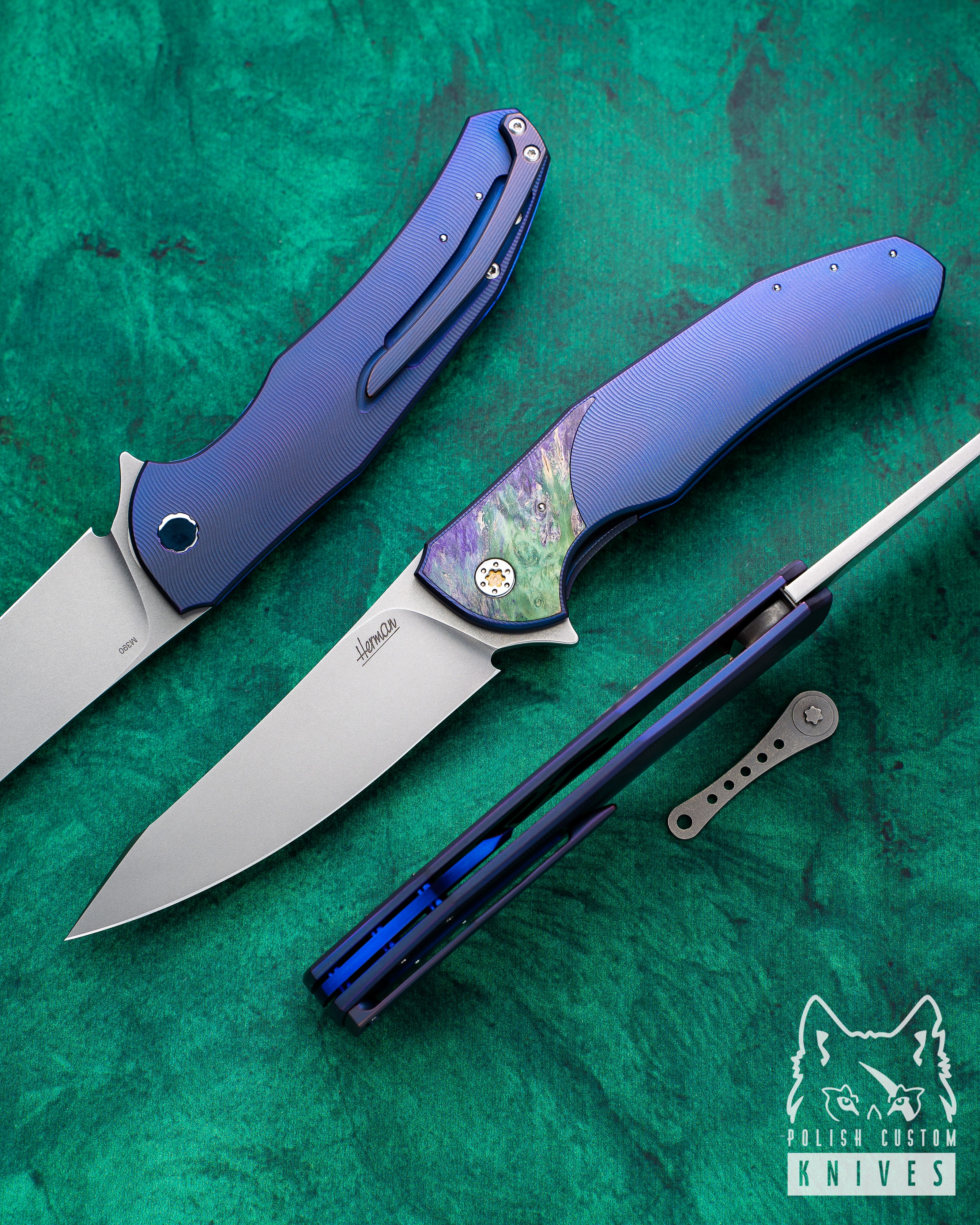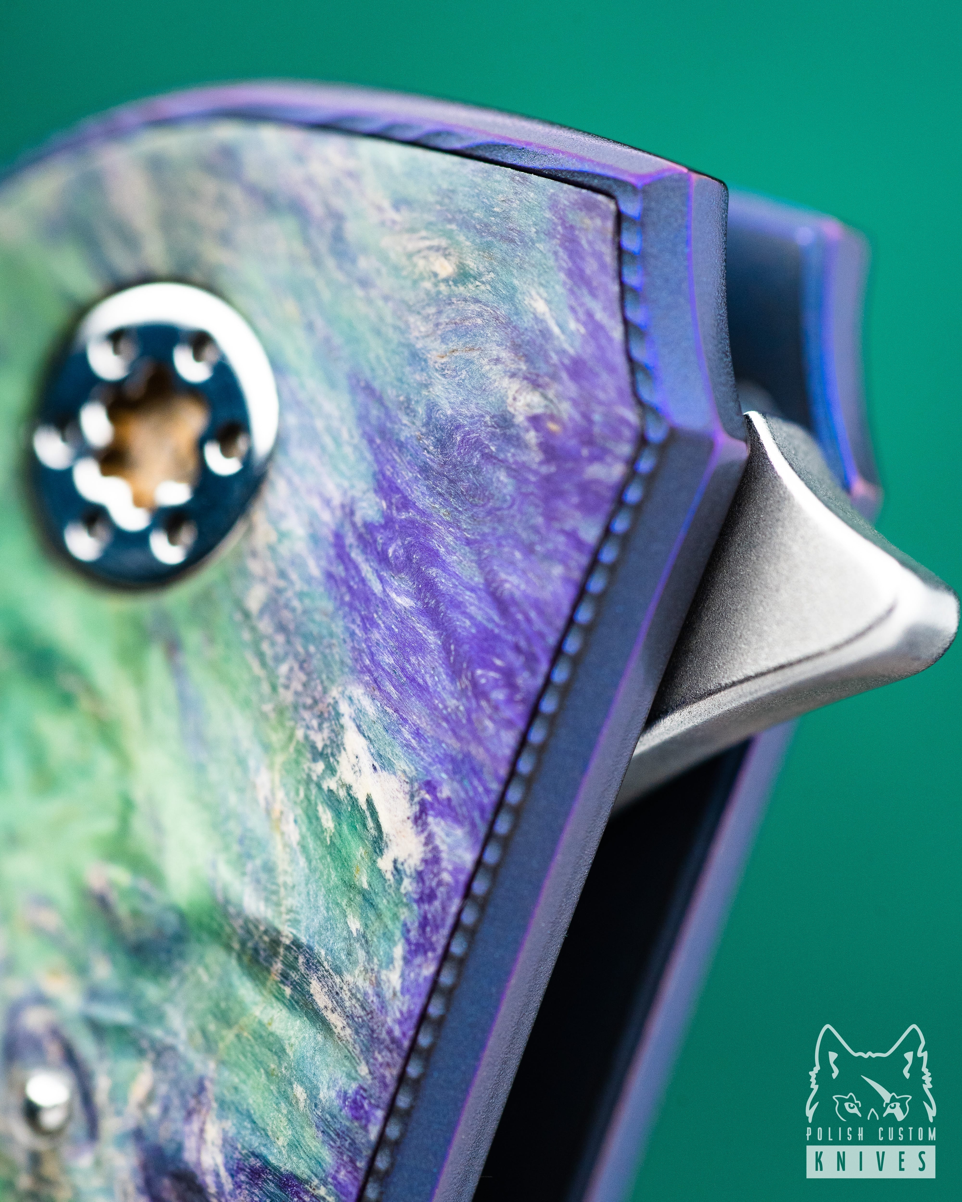 Handle: Titanium Grade 5, Stabilized Wood