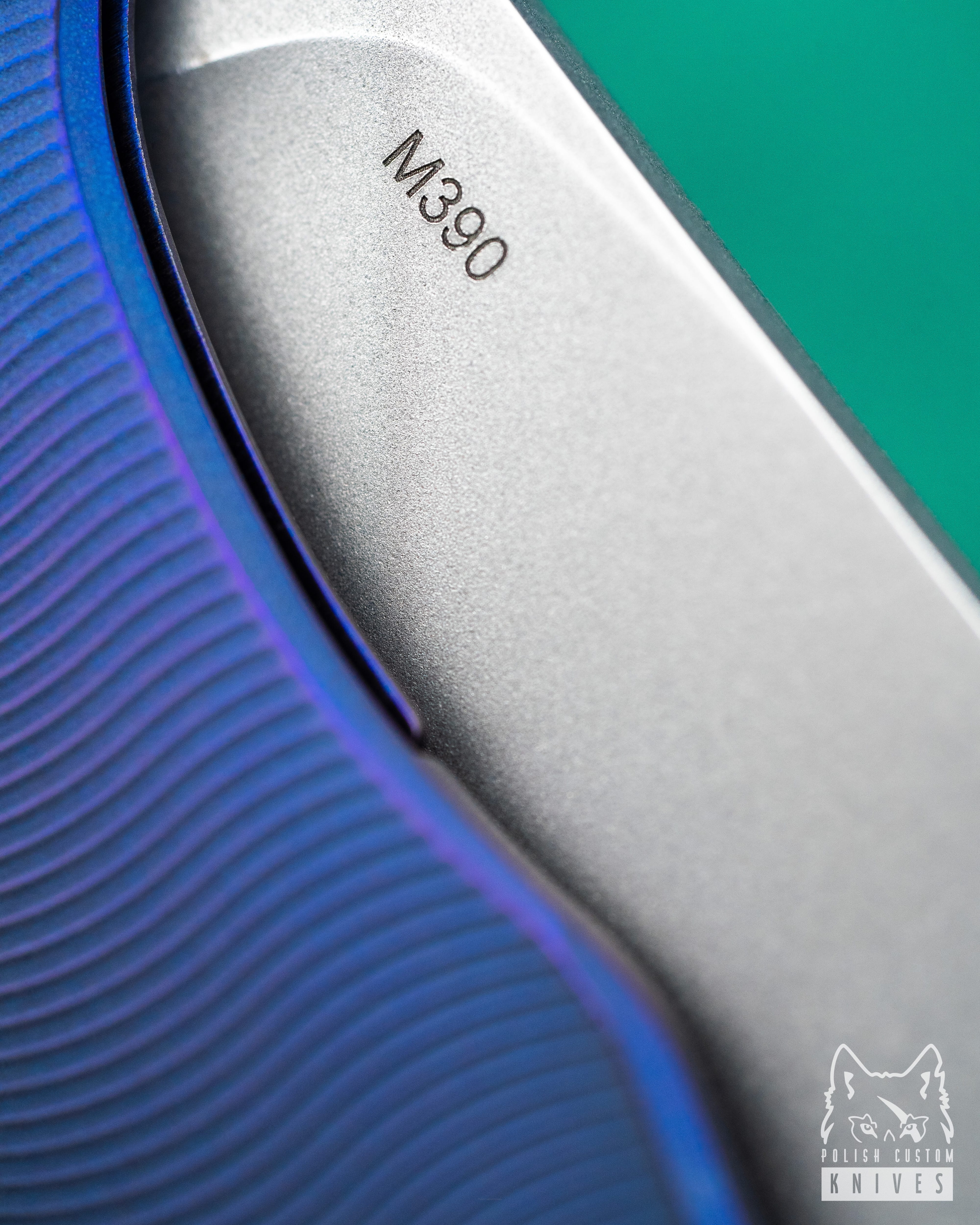 Blade: M390 Bohler stainless powder steel, thickness 3.6 mm (0.14"), hardness 61 HRC
