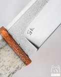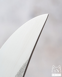 Most often I use D2 steel (K110), sometimes (mainly on request) branded damast steel (Damasteel, Balbach) or powder steel (mainly K390). They provide high hardness and long blade lasting time, which are the basic conditions I require from a good knife.