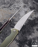 Ergonomically designed handles of these knives ensure comfort and a secure grip, perfectly complemented by the use of advanced materials. High-quality steels such as M390 and M398 from Bohler, CPM MagnaCut, Damasteel RWL34, Damascus steel, and Damax from Alleima, combine reliability and durability with aesthetic perfection.